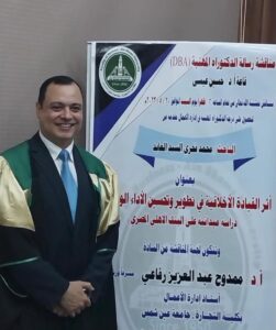 إلى أن تقدّم لمناقشة رسالة الدكتوراه المهنية تحت عنوان ( أثر القيادة الأخلاقية في تطوير وتحسين الأداء الوظيفي – دراسة ميدانية علىَ البنك الأهلي المصري ) .. فحصل علىَ الدرجة العلمية كإضافة لمسيرة عطاء حافلة بالإنجازات .