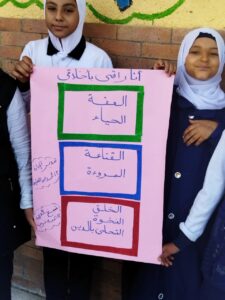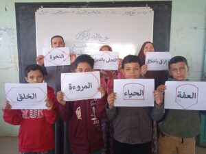 كما قام بعض الطلاب بتمثيل فقرات مسرحية تعكس معنى العفة ، و أهميتها وفي نفس الوقت قام الطلاب الموهوبين بتصميم مطويات وصحف حائط وبعض الرسومات التي تتناول قيمة العفة كما قام بعض الطلاب بترجمة معنى العفة إلى اللغة الإنجليزية والفرنسية .