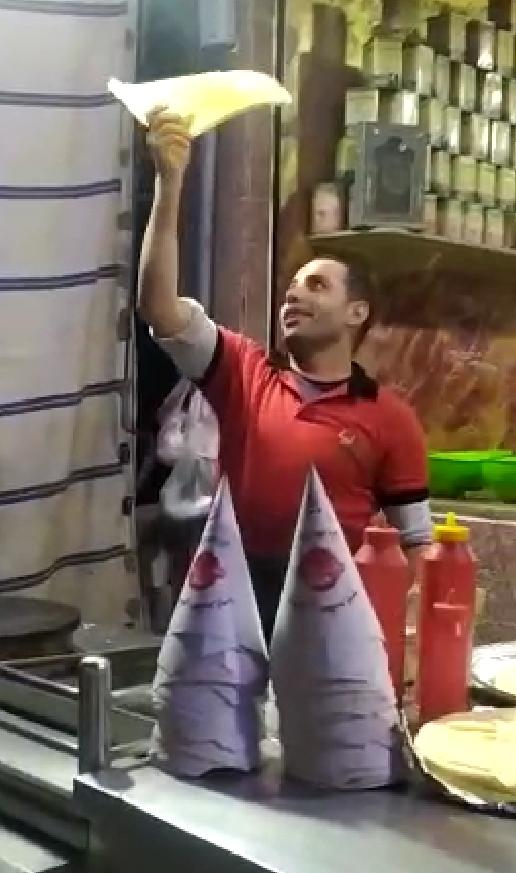 بتطور نفسي باستمرار” بهذه الكلمات أوضج الشاب الثلاثيني مهارته المختلفة فى صنع البيتزا والكريبات بأنواعها الشهية يستكمل:” دايما بتعلم من نقد الزبون وآراء الناس فى الأكل، لان دا هو طريقي الوحيد للتطوير”.