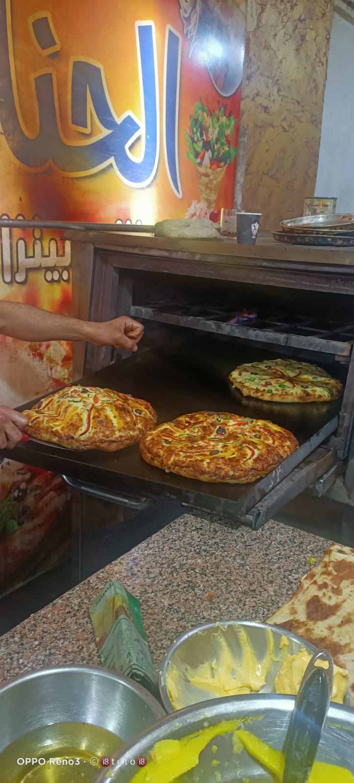 ييقول:”كل الأكلات متاحة عندي البتزات بأنوعها سواء بالسجق أو الكبدة او لحمة مفرومة أو فراخ، ومقاسات بتبدأ من 20 لحد 70 ج، بالاضافة للكريبات كلها من اول كريب البطاطس لحد الكريب المشكل”.