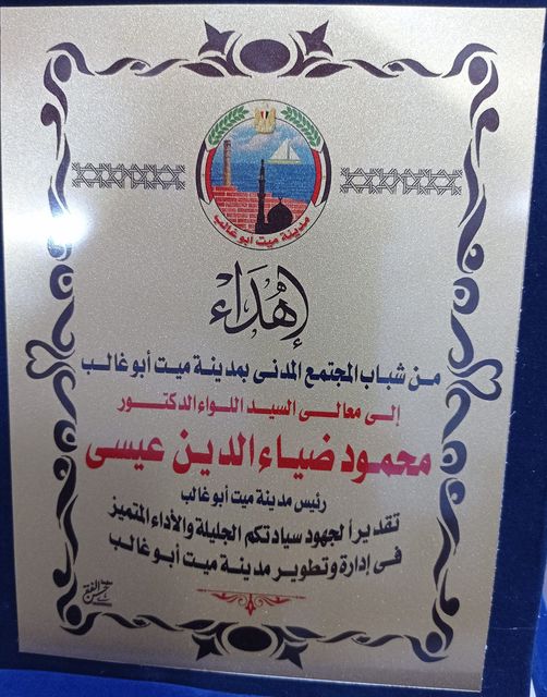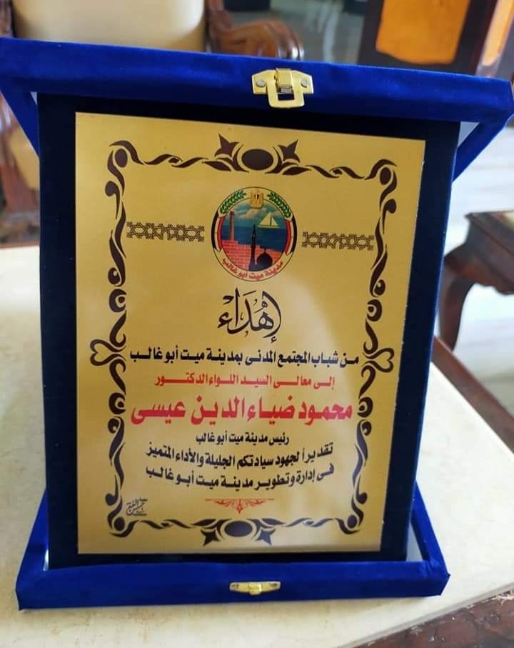 وقدم شباب المجتمع المدنى درع خاص للدكتور محمود ضياء، رئيس المدينة، تقديرًا له وعرفانا بالمجهود الضخم الذي شهدته المدينة من إنجازات خلال رئاسته المدينة طوال الـ 11 شهرا مما حقق طفرة نوعية على كافة المستويات وأشاد بها كافة المواطنين .
