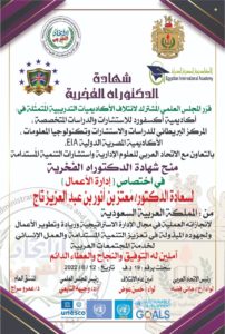 منح شهادة الدكتوراه الفخرية في اختصاص { إدارة الأعمال }