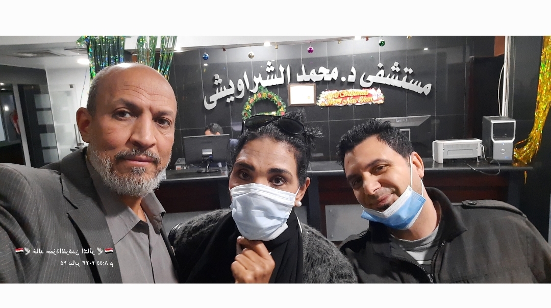 حلمي بكر في مستشفي الشبراويشي بميدان فيني الدقي وكان في استقبالنا الدكتور نور المتابعة لحالة الفنان
