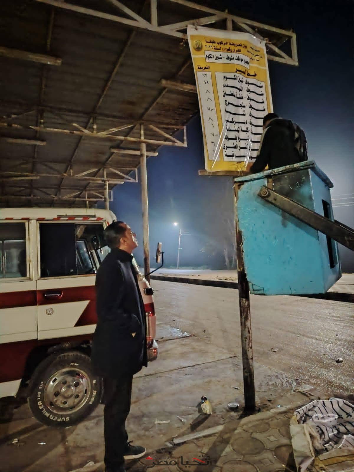 رئيس المركز والمدينة يتابع تركيب لافتات “التعريفة الجديدة” بكافة المواقف بمنوف