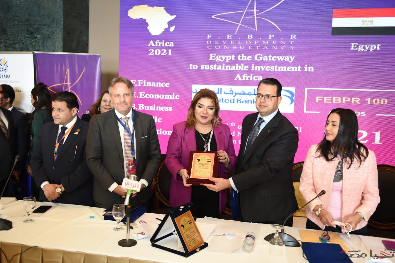 كرم مؤتمر مصر بوابة الإستثمارات المستدامة لأفريقيا في ختام جلسته الإعلامية عبير محمود، مقدمة برامج بالتليفزيون المصري، وذلك لنشاطها الإعلامي في دعم العلاقات المصريه الأفريقية وقضايا وتمكين المرأة المصرية والعربية والإفريقية وتنوير المجتمع.