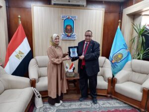 وفي ختام اللقاء أهدى رئيس جامعة الأقصر درعًا تذكاريا من جامعة الأقصر للأستاذة الدكتورة نهلة الصعيدي؛ تقديرًا لجهودها ومشاركتها في المبادرة.