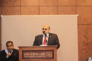 من جانبه، ألقى الدكتور محمد المحرصاوي، رئيس الجامعة كلمتة متحدثاً عن مكانة اللغة العربية في القرآن، مؤكدا على أن اللغة العامية لا يمكن أن تكون لغة رسمية معتمدة حيث أن البعض يقوم باستخدام وسائل الاعلام للتعقيد في اللغة العربية.