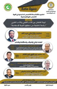 يناقش الباحث محمد رباح على عبد الله، المعيد بقسم التربية الإسلامية بجامعة الأزهر فرع القاهرة، رسالة التخصص في الماجستير تحمل عنوان” تربية الطفل بين الأدب العربي والغربي دارسة تحليلية من منظور التربية الاسلامية”، يوم الاننين المقبل، وذلك بحضور عدد من الاساتذة والمتخصصين.