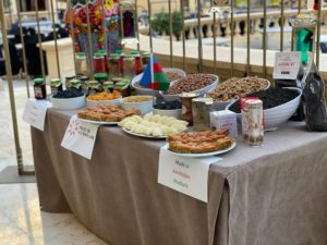 وشملت منتجاتها المعروضة عين الجمل، البندق، اللوز، والبهمز، والزبيب، والمشمش، وعصائر الفاكهة، والمربيات، والعسل الطبيعي، والحلاويات الخاصة بالبلد (شكربورا، والبقلاوة)، والشاي بمختلف الأنواع.