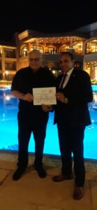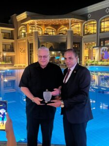 “تكريم مستحق للسيد /رجل الأعمال المصري الذي حقق الكثير والكثير من أجل دعم وطننا الغالي مصر. تم منح سيادته من قبل مؤسسة تحيا مصر درع ووسام من الدرجة الأولى والرفيعة، تقديرًا لما قام به على دفع عجلة الإنتاج والإستثمارات التي تعكس قدرة وقوة الإقتصاد المصري. كما قام سيادته بتقارب العلاقات بين مصر واليابان خلال فترة كاقنصل عام لليابان في محافظة الإسكندرية حتي عام 2020.