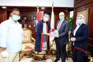 محافظ بني سويف يكرم الطالب أحمد السيد برعى أول الجمهورية في الثانوية العامة و يمنحه درع التفوق و بعض الهدايا القيمة