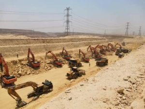 كما بدأت أعمال تجهيز التحويلات المرورية الخاصة لتنفيذ كوبري المسار لعبور طريق السخنة…. وجاري التحضير لبدء تتفيذ الأعمال الصناعية علي طول الخط. (كباري سيارات او أنفاق لزوم مخرات السيول)