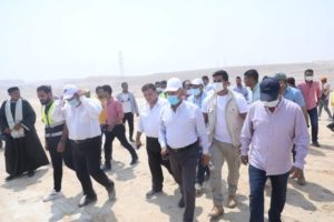 تفقد الفريق مهندس كامل الوزير وزير النقل يرافقه كل من رئيس الهيئة العامة للطرق والكبارى وقيادات الهيئة القومية للانفاق واستشاري المشروع والشركات المنفذة لاعمال تنفيذ مشروع قطار (العين السخنة – العلمين الجديدة – مرسى مطروح) وذلك في المسافة من حلوان حتى العين السخنة مرورا بالعاصمة الإدارية الجديدة حيث تم الانتهاء من أعمال أبحاث التربة والرفع المساحي وتخطيط المسار وجار العمل في تنفيذ الجسور الترابية والكباري والأعمال الصناعية للمسار والأسوار وكذا المحطات