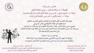 قررت جامعة الأزهر برئاسة الدكتور سلامة داود، رئيس الجامعة، والدكتور محمود صديق، نائب رئيس الجامعة للدراسات العليا والبحوث، والدكتور محمد فكري، نائب رئيس الجامعة لفرع البنات، عقد ندوة تثقيفية مجانية يومي 20, 21 سبتمبر الجاري، مجانا طلاب وطالبات الأزهر الشريف ورواد العلم والباحثين، وذلك بقاعة الاحتفاللات الكبرى بفرع البنات، من الساعة الحادية عشرة صباحا حتى الثالثة ظهرا، بهدف تحقيق التنمية المستدامة ورؤوية مصر 2030 .
