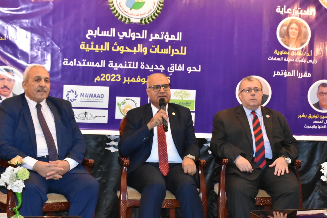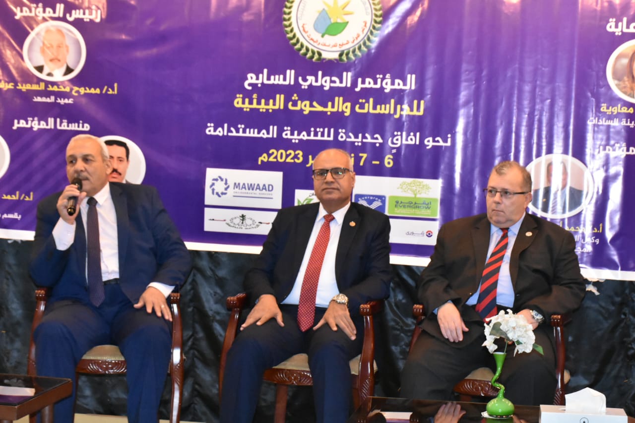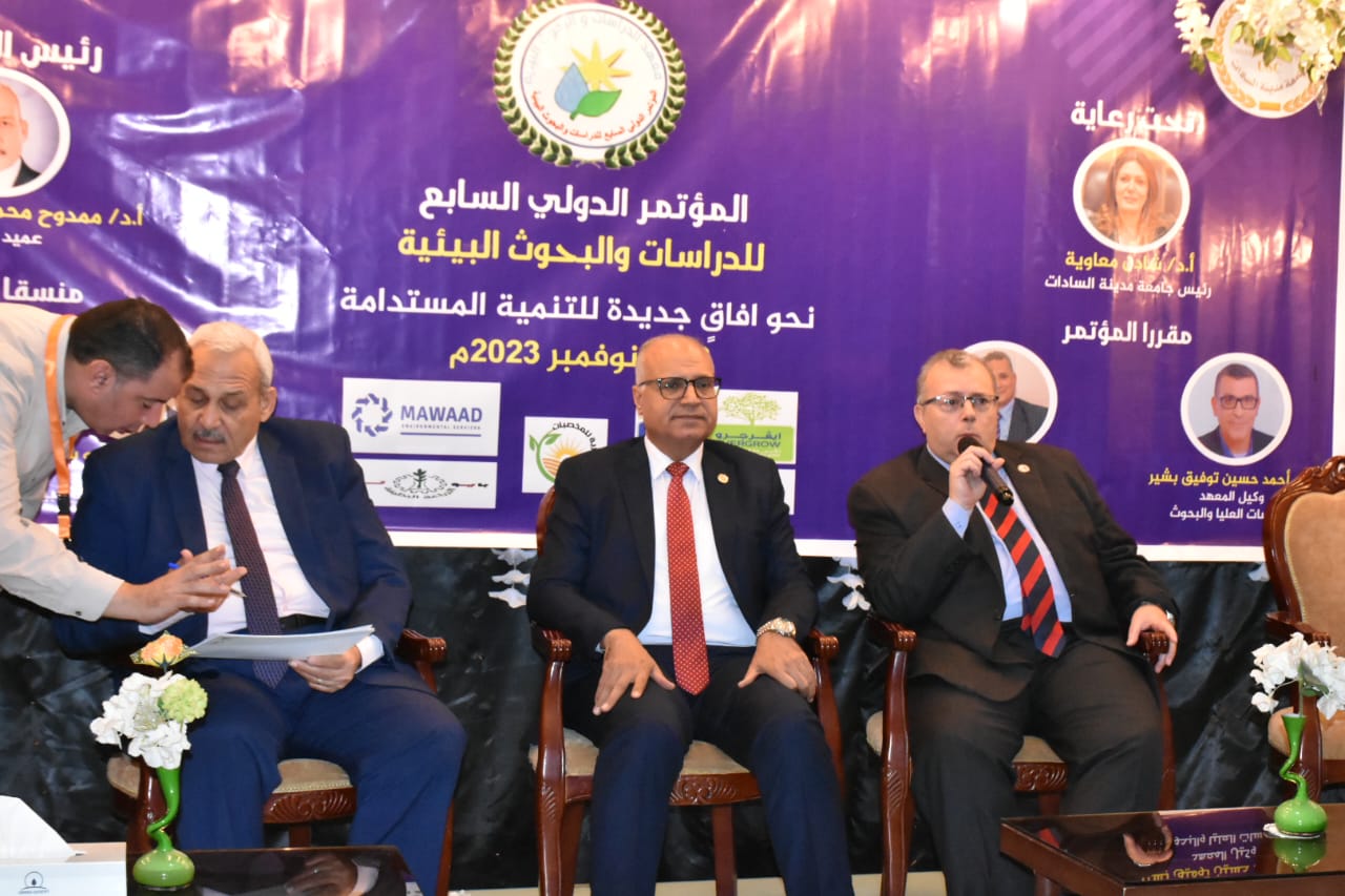 في إطار حرص معهد الدراسات والبحوث البيئية – جامعة مدينة السادات على مواكبة التحولات الرقمية العالمية والإستفادة من الفرص التي تتيحها في تعزيز القدرات التنافسية لقطاع البيئة والتنمية المستدامة، وتحت رعاية الدكتورة شادن معاوية، رئيس الجامعة، وفى حضور الدكتور خالد جعفر، نائب رئيس الجامعة لشئون خدمة المجتمع وتنمية البيئة، والدكتور شريف محمد على، نائب رئيس الجامعة لشئون التعليم والطلاب، ورئاسة الدكتور ممدوح عرفه، عميد المعهد ، وإشراف الدكتور أحمد حسين توفيق، وكيل المعهد للدراسات العليا والبحوث، والدكتور محمد أحمد الحويطي، وكيل المعهد لشئون خدمة المجتمع وتنمية البيئة.(مقررا المؤتمر)، والدكتور أحمد جمال عبد الحميد، أستاذ متفرغ قسم مسوح الموارد الطبيعية، والدكتور محمود أبو سكين، الأستاذ بقسم التنمية المستدامة (منسقا المؤتمر)؛ أختتمت فعاليات المؤتمر العلمي الدولي السابع للدراسات والبحوث البيئية تحت عنوان (نحو آفاق جديدة للتنمية المستدامة) والذي استمر لمدة يومين 6، 7 نوفمبر .