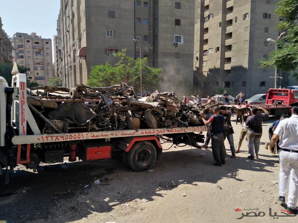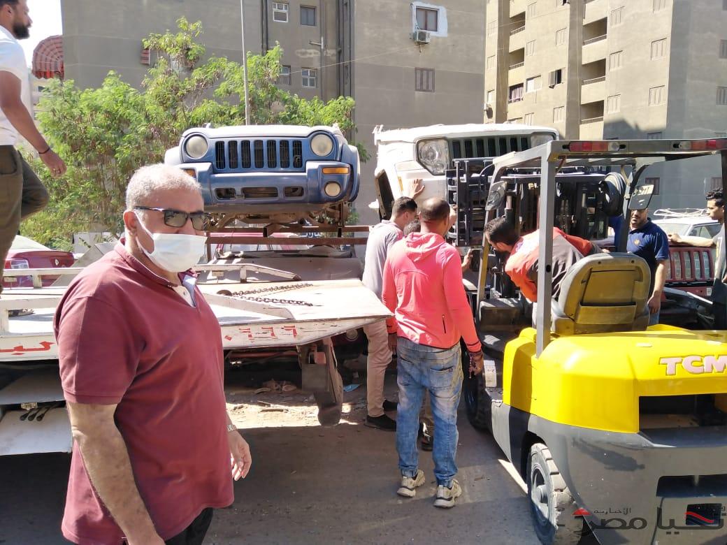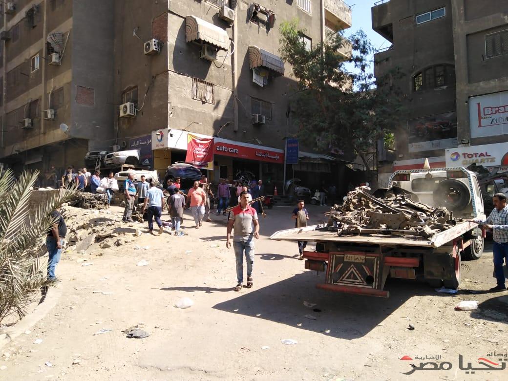 صور.. إزالة اشغالات محلات بيع قطع غيار السيارات بـ«صقر قريش»