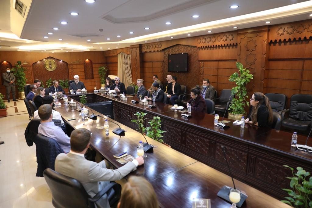 استقبل أ.د محمد الضويني، وكيل الأزهر، وفد مساعدي نواب الكونجرس الأمريكي، اليوم الخميس، بمقر مشيخة الأزهر، للتعرف على جهود الأزهر في مكافحة الإرهاب والتطرف، وتعزيز قيم التسامح والأخوة الإنسانية.